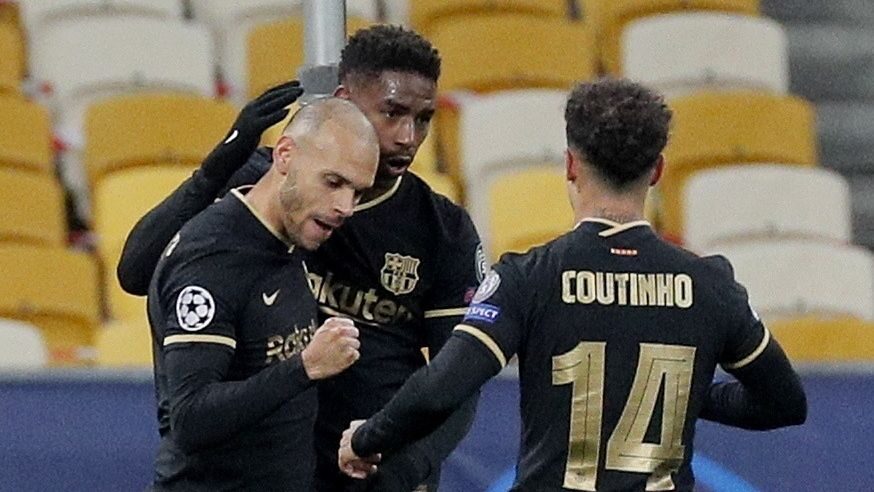 El FC Barcelona ha sellado su pase a octavos de final de la Liga de Campeones tras derrotar al Dinamo de Kiev (0-4) en la cuarta jornada de la fase de grupos gracias a los goles de Sergiño Dest, Martin Braithwaite (2) y Antoine Griezmann, suficientes para que el plan B de Ronald Koeman diera sus frutos ante la plaga de lesiones que azota al conjunto culé. No estaba Messi, ni De Jong, ambos descansando, tampoco los lesionados Piqué, Sergi Roberto, Busquets, Ansu Fati... una larga lista a la que supo sobreponerse un Barça venido a más en la segunda mitad, obligado a mostrar una reacción tras su derrota en el Metropolitano y a las dudas que comienza a generar el proyecto de Koeman.