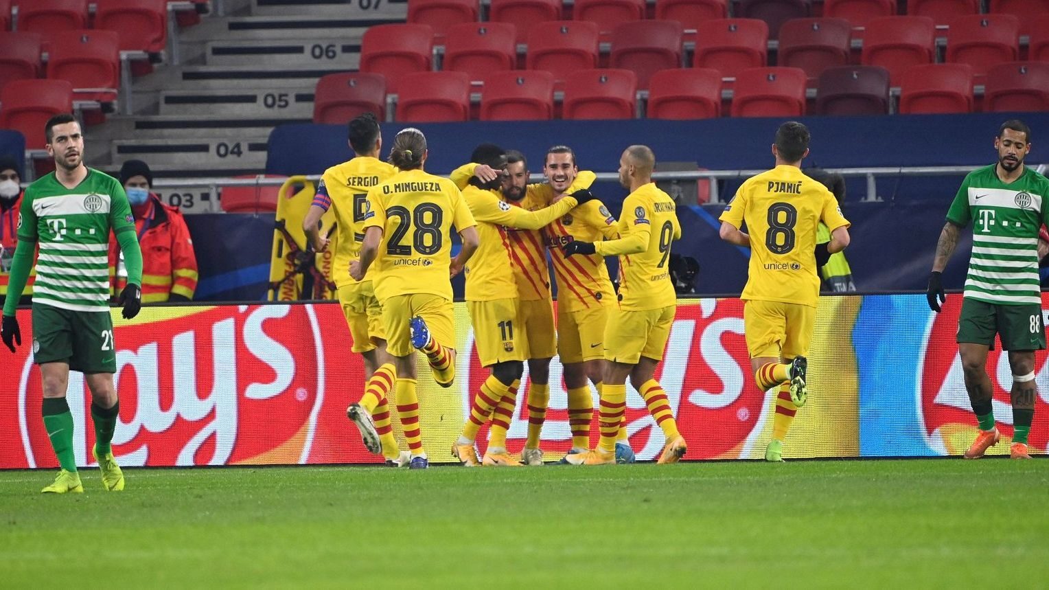 Árbitro: Aleksei Kulbakov (Bielorrusia). Amonestó a Sigér (min.28), del Ferencváros; y a Busquets (min.30), Griezmann (min.53) y Trincao (min.70), del Barcelona
