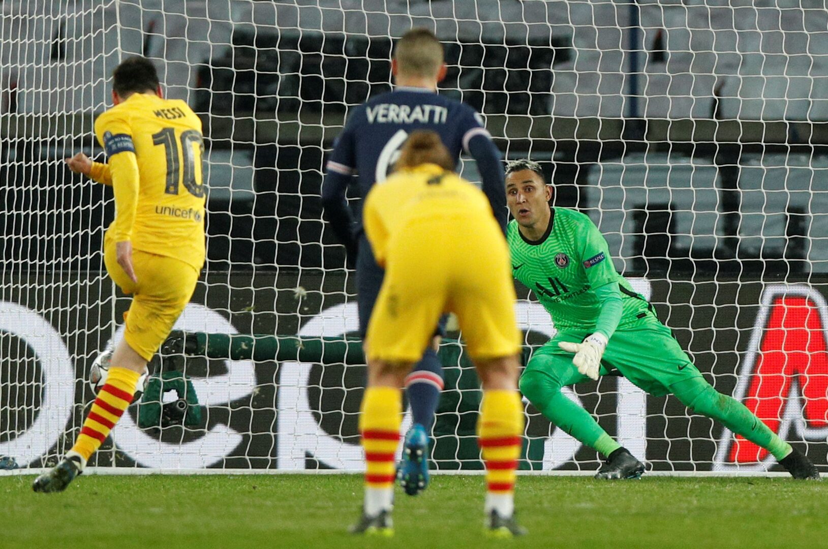 Keylor, ex del Real Madrid, firmó una exhibición de paradas en especial en el primer tiempo, sobre todo en una mano dura abajo a Dembélé, otra arriba con ayuda del palo a Sergiño Dest y un penalti a Messi, todo en 45 minutos frenéticos y de superioridad azulgrana. El argentino había permitido soñar al Barça con un golazo de 30 metros para empatar el tanto de penalti de Mbappé. Sin embargo, el 10 falló una pena máxima en la última jugada del primer tiempo, jarro de agua fría para un aterrizaje en París como exigía el guión de las grandes remontadas.