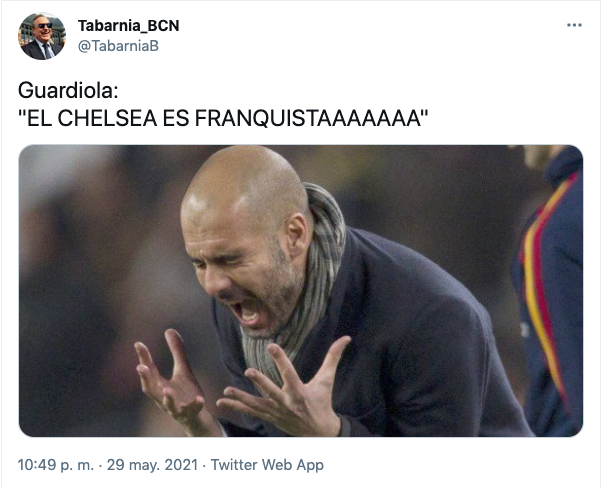 Las redes sociales echan humo con la derrota del Manchester City en la final de Champions ante el Chelsea en Do Dragao (0-1) y Pep Guardiola se convierte en blanco de las burlas.