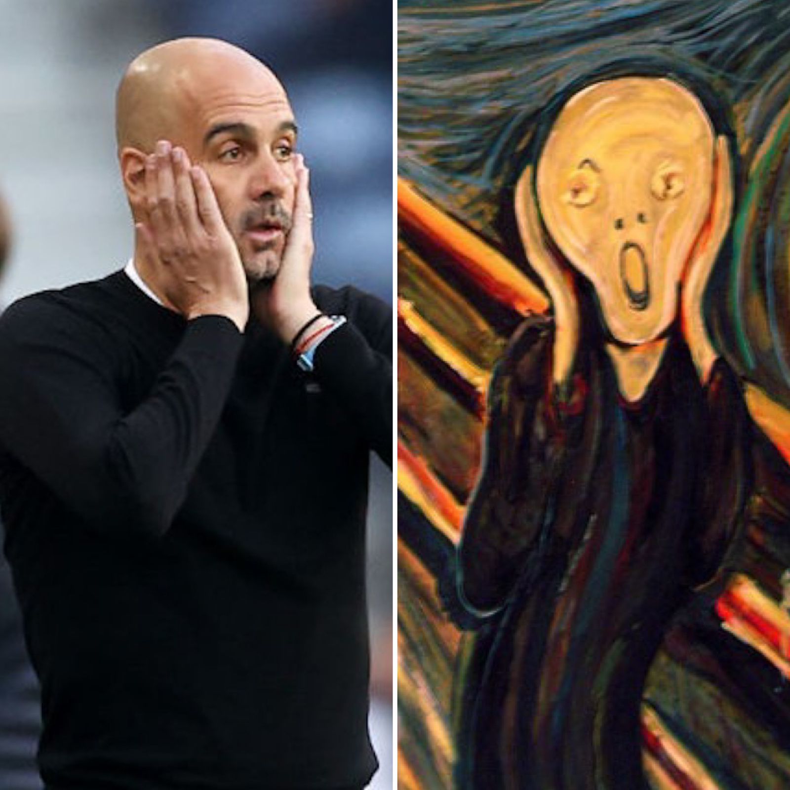 Guardiola, comparado con El grito de Edvard Munch por su pose.