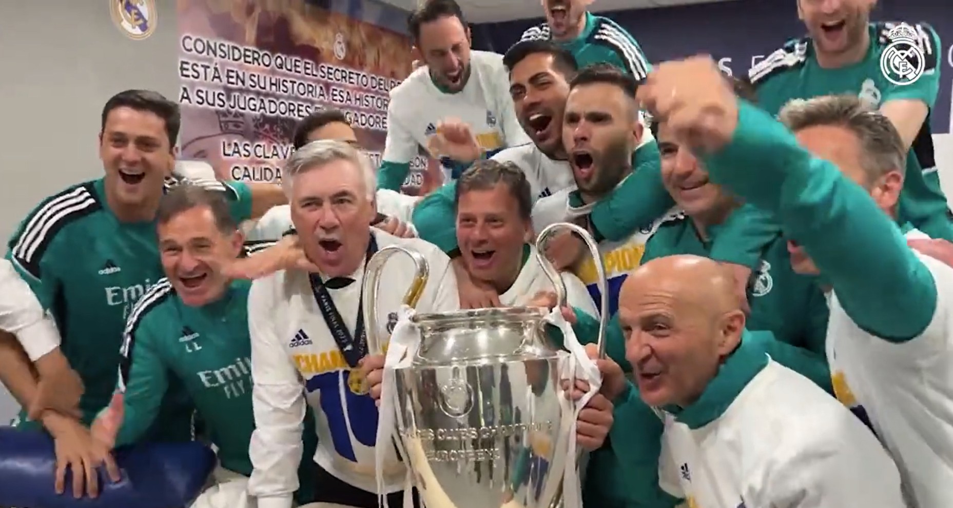 Tras ganar la decimocuarta Copa de Europa, el vestuario del Stade de France se convirtió en una fiesta del madridismo. Después de que Marcelo levantara la Orejona sobre el césped, la plantilla continuó con la celebración en el vestuario.