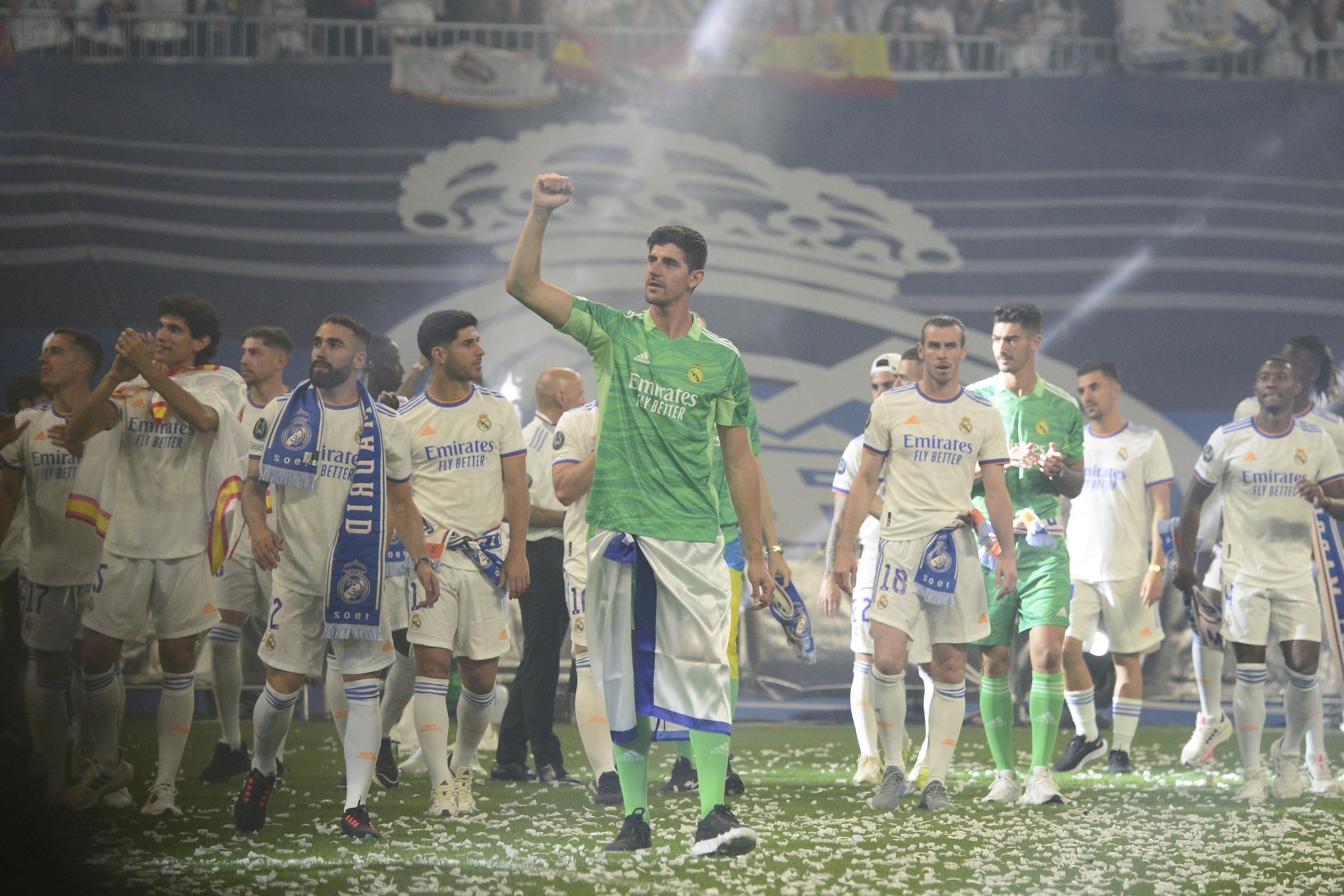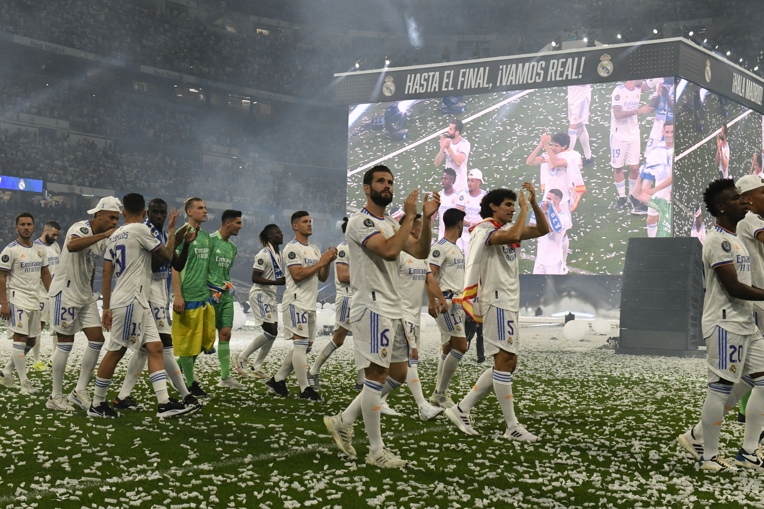 Los campeones de Europa han vivido una larga jornada de celebraciones con su visita a la Catedral de La Almudena, la Comunidad, el Ayuntamiento y Cibeles, antes de la fiesta final en el estadio Santiago Bernabéu.
