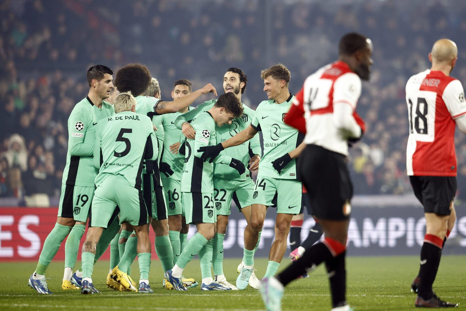 Con seis puntos después de cinco jornadas, el Feyenoord se quedará finalmente con el tercer puesto del Grupo E. Mientras, el Atlético alcanzó los 11 puntos y se jugará el liderato definitivo contra la Lazio, también clasificada con 10 puntos.