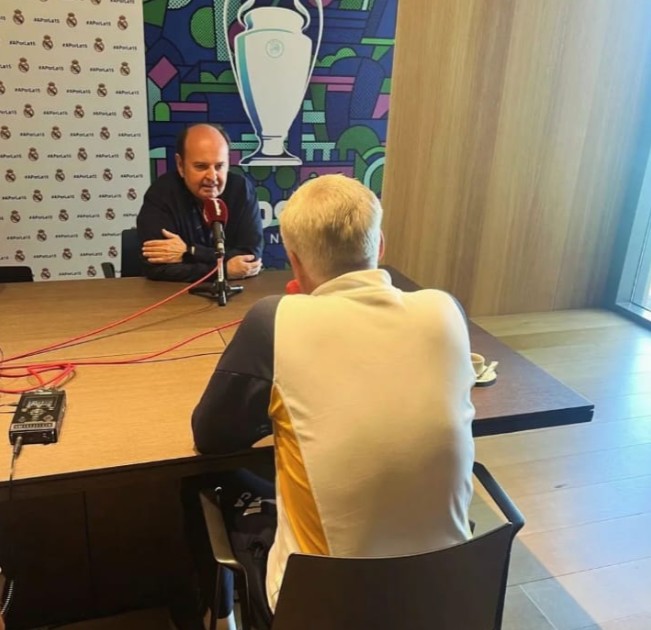 Carlo Ancelotti en El Primer Palo, el programa deportivo nocturno que Juanma Rodríguez dirige y presenta de lunes a viernes en esRadio. El entrenador del Real Madrid ha hablado en nuestros micrófonos a cuatro días de la gran final de Champions que los blancos disputarán el próximo sábado en el estadio londinense de Wembley contra el Borussia Dortmund, en busca de su decimoquinta Copa de Europa.