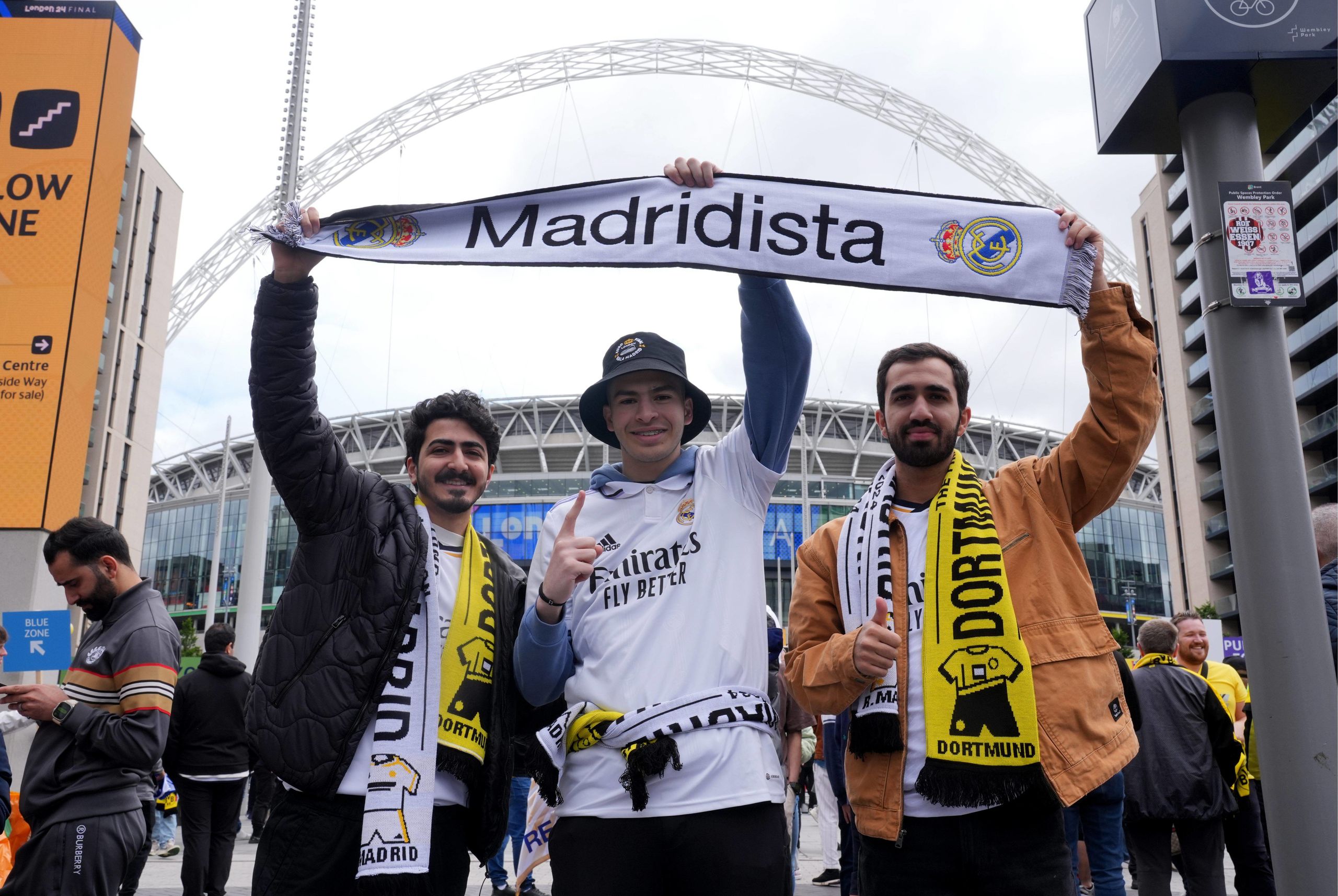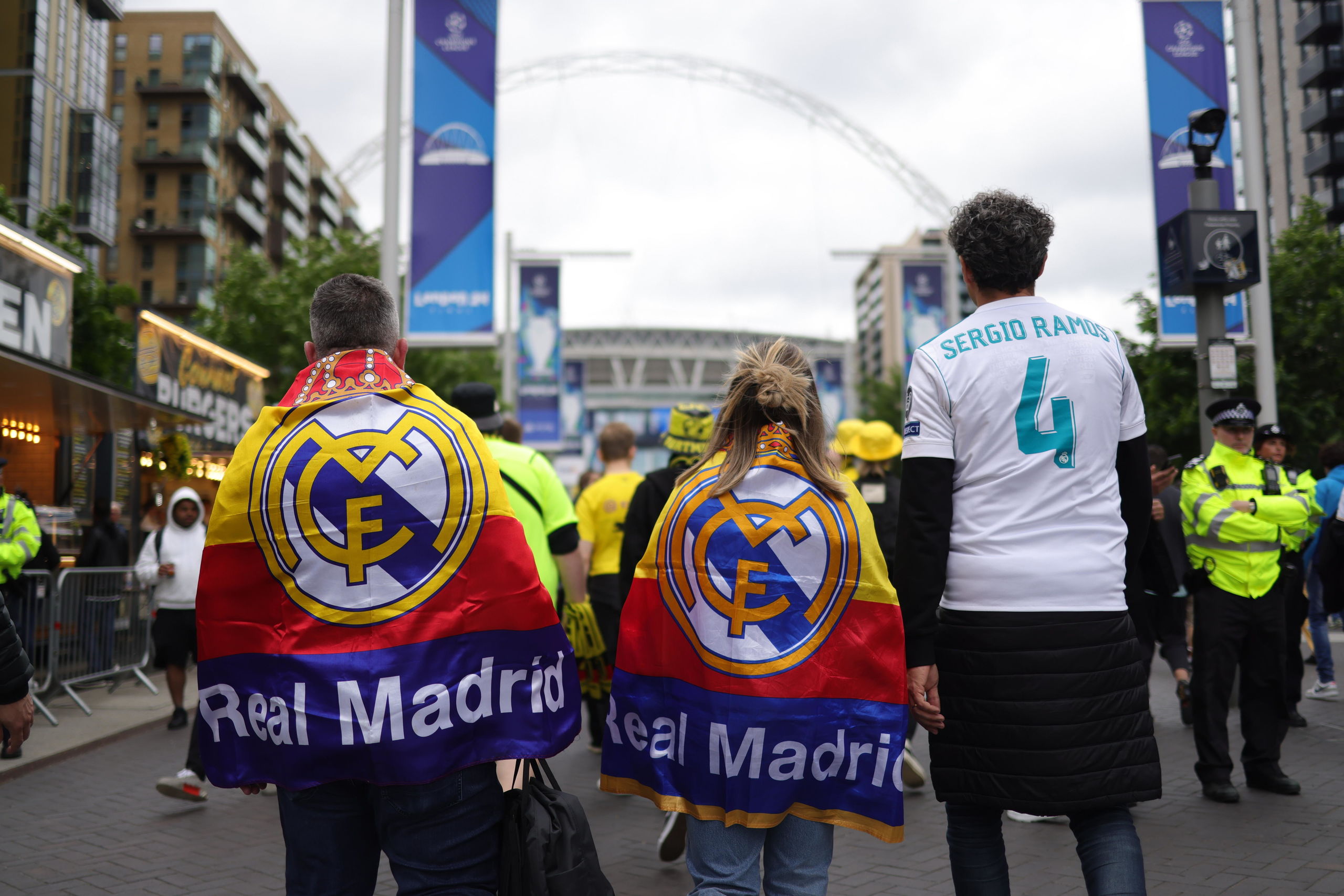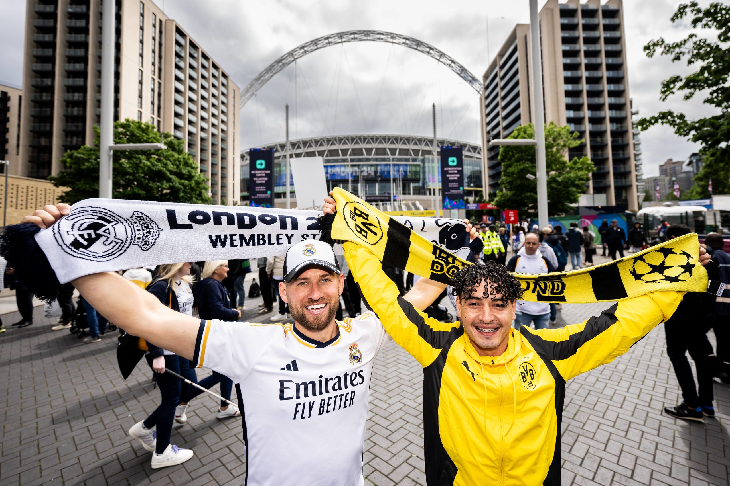 Miles de aficionados del Real Madrid y el Borussia Dortmund, presentes en Londres para la final de la Champions en Wembley.