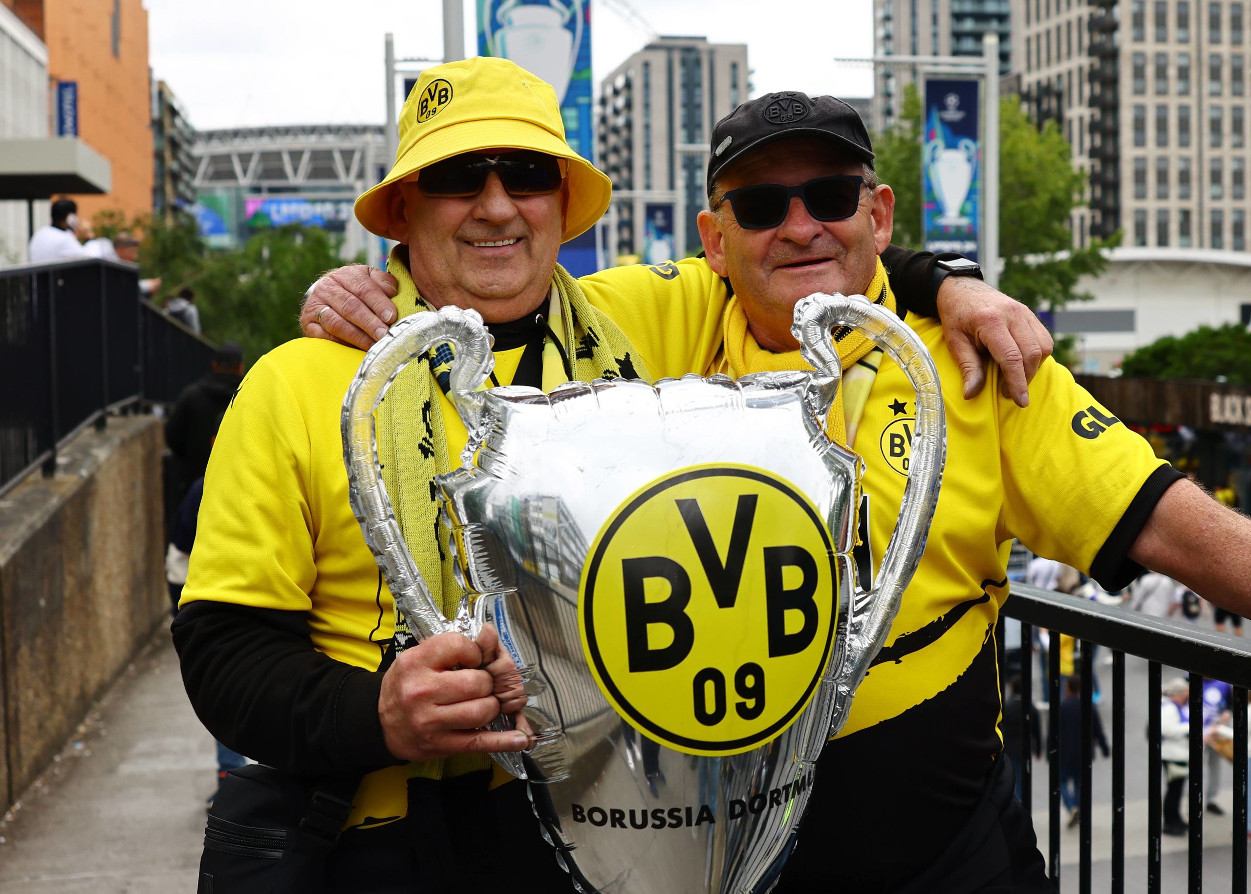Aficionados del Real Madrid y el Borussia Dortmund calientan motores para la final de Champions