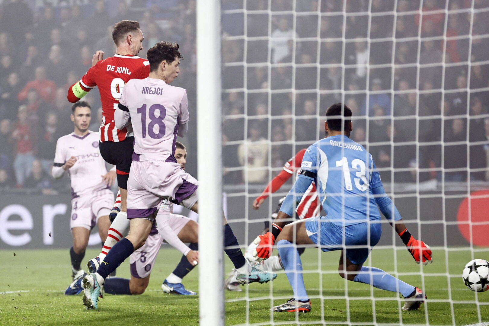 No decretó Oliver esa posible pena máxima y el partido se marchó hacia su segundo acto, que comenzó mal para los visitantes al ver a Luuk de Jong estrellando un remate en el poste, después de una bonita acción de Tillman en el control y pase inmediato. Para colmo, Arnau Martínez vio una segunda amarilla tras derribar a Lang en una banda. Con un hombre menos, el Girona se salvó de encajar el 3-0 en un tiro de Luuk de Jong cuando corría el 69' y en otro remate infructuoso de Guus Til al minuto siguiente. Eso sí, fue pan para hoy y hambre para mañana, pues se avecinaba el tercer gol del PSV. Ismael Saibari lo logró con un derechazo raso, pero anulado por pisar sin querer a Krejci.