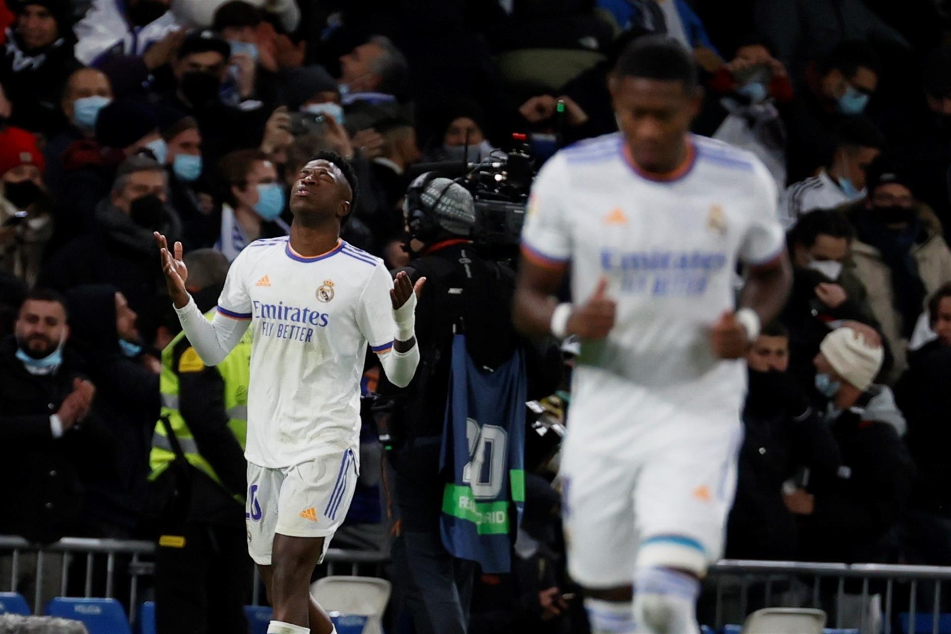 Sale con: Courtois; Carvajal, Militao, Alaba, Mendy; Casemiro, Kroos, Modric; Vinicius, Asensio y Benzema