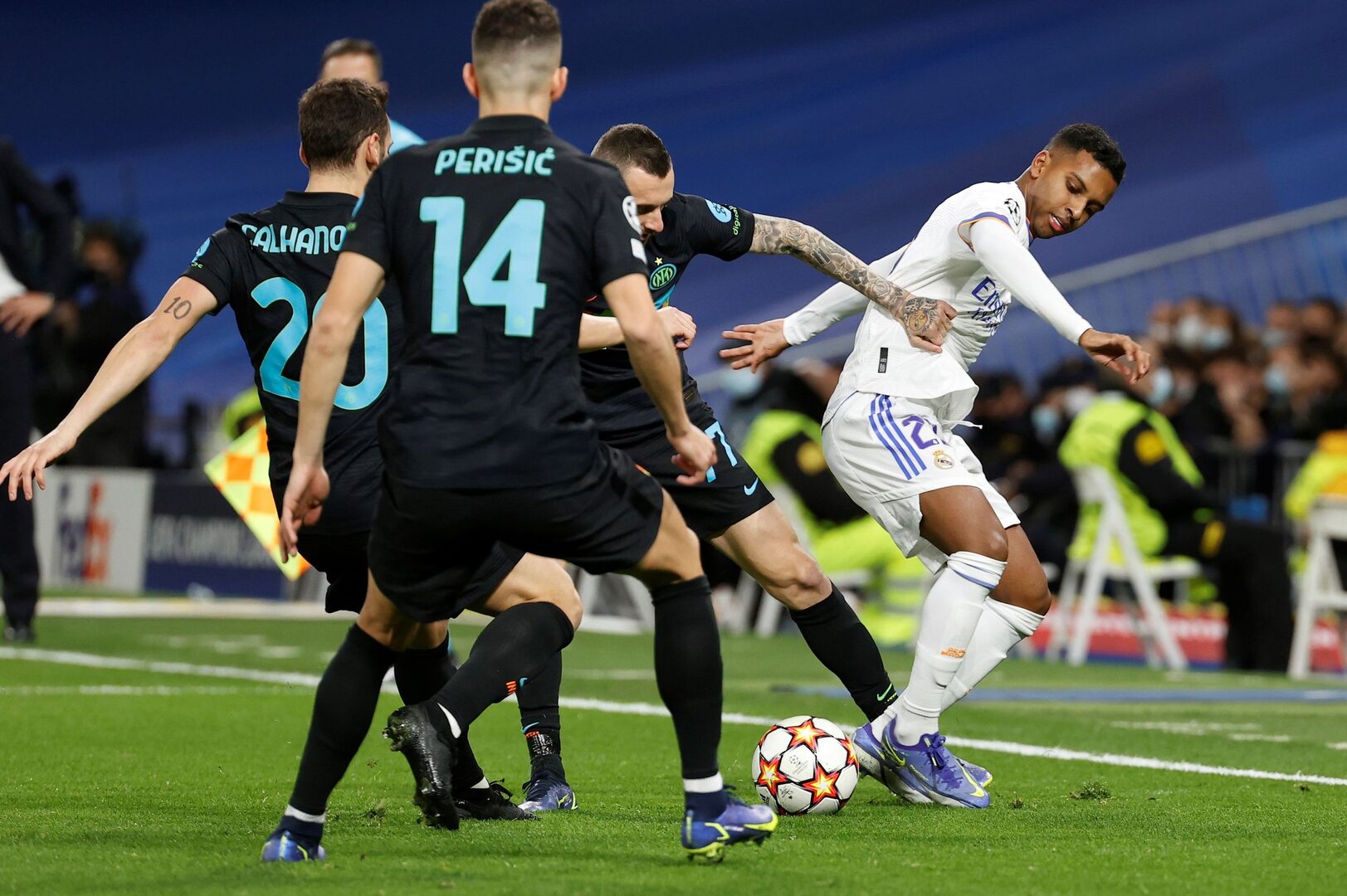El Santiago Bernabéu pone en juego esta noche el primer puesto del grupo D. El Real Madrid, al que le vale con el empate para acabar la fase de grupos como líder, recibe al Inter de Milán sin Benzema y con Vinícius como referencia arriba.