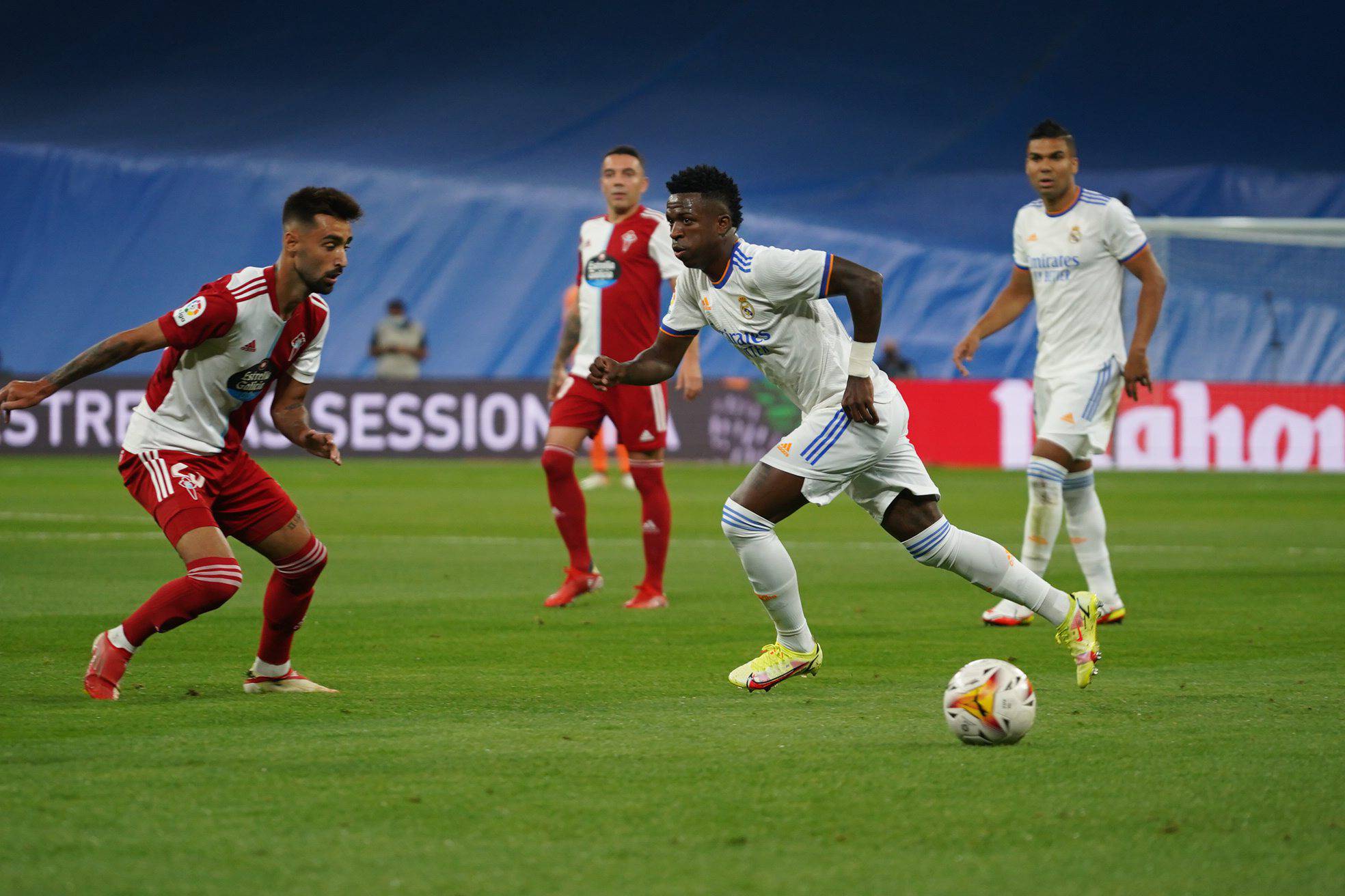 Buen partido en Balaídos. Salió mejor el Celta con una gran presión alta que incomodó mucho al Madrid. Courtois privó del gol a los olívicos y un penalti tonto de Nolito sobre Militao lo anotó Benzema para poner el 0-1. Tras el gol el Madrid mejoró, pero en el tramo final de la primera mitad se vino arriba el Celta y consiguió el gol tras un gran centro de Nolito que remató de cabeza Galhardo. El tanto lo anuló González Fuertes tras ver la repetición en el VAR al considerar que Aspas, que estaba en fuera de juego, impide a Alaba llegar al balón que se colaba bajo palos y el Madrid se va al descanso con ventaja.