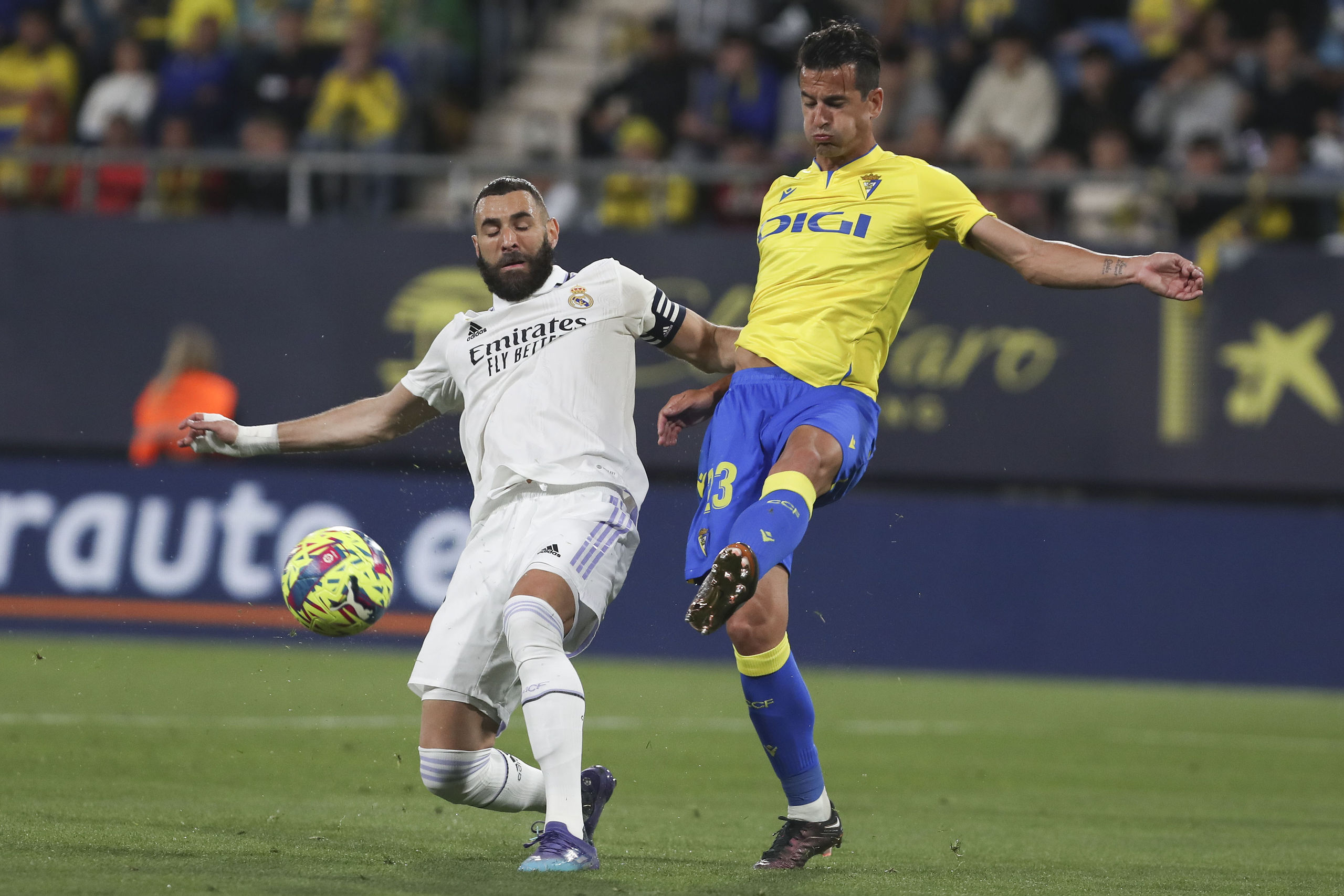 0-0 pero muchas ocasiones en Cádiz. Las más claras han sido las de Benzema al larguero y la del Pacha al poste. Domina el Madrid pero hace daño a la contra el Cádiz. David Gil está salvando a los suyos, de momento.