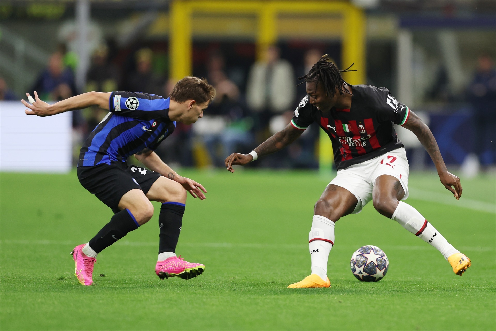 Maignan recoge la pelota tras un corte por la banda de Calabria sobre Dimarco.