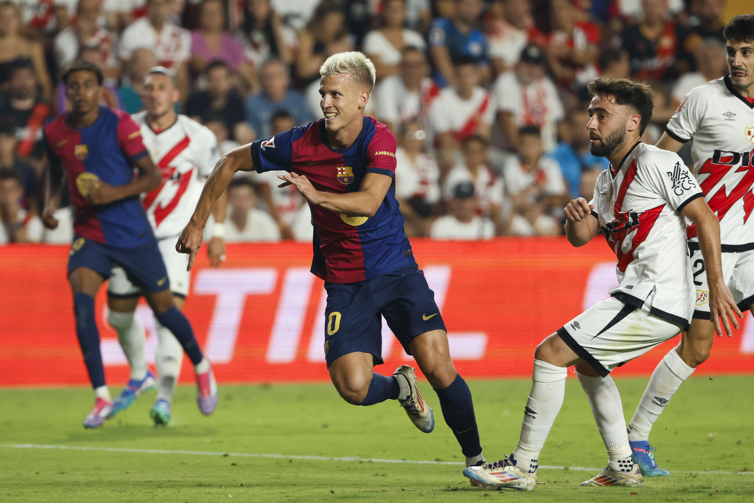 No va a tirar la toalla el Rayo, aunque el Barça ha dado claramente un paso adelante en la segunda mitad, y más con la presencia de Olmo en el campo.