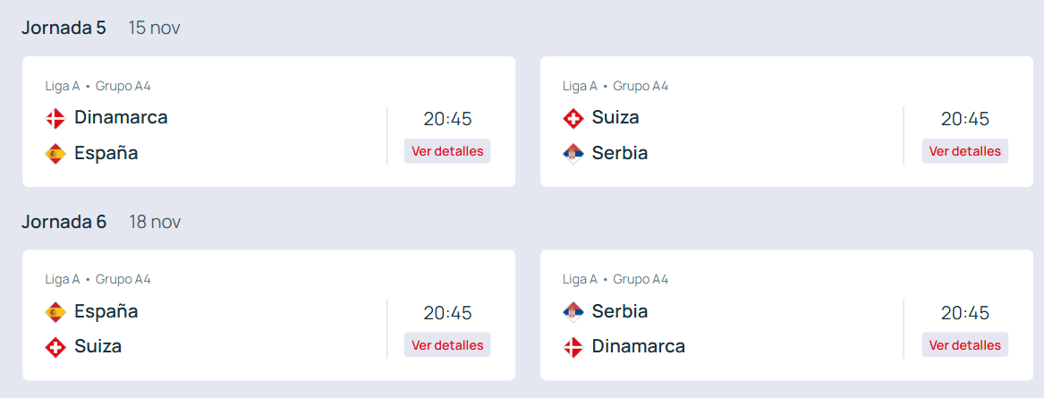 Un encuentro que viene precedido por la clasificación asegurada de España tras la victoria por 3-0 en el último partido ante Serbia. Hoy la selección de Luis de la Fuente buscará afianzar la primera plaza del grupo ante sus perseguidores.