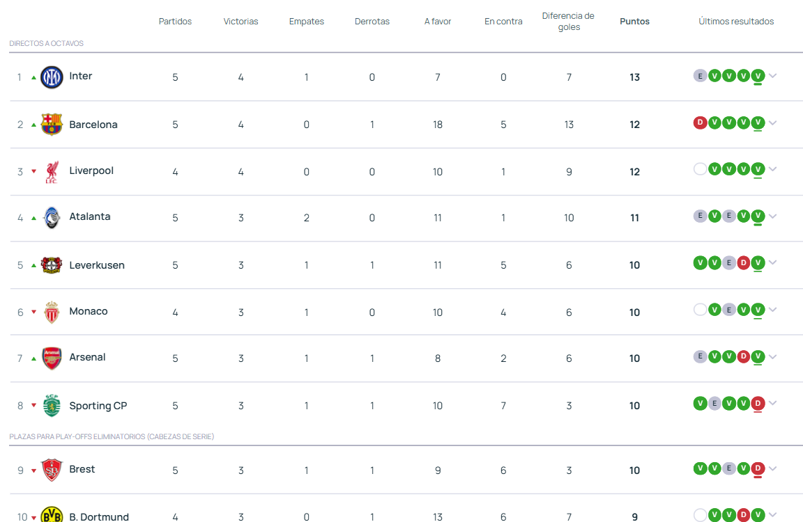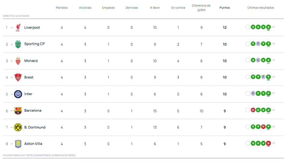 El Barcelona sin embargo, sigue líder en la Liga pese a los dos últimos tropiezos con 4 puntos de ventaja sobre el Real Madrid. En Champions, el Barcelona ha encadenado varias victorias seguidas con goleadas incluidas hasta obtener los 9 puntos. Ahora mismo, los de Hansi Flick cuentan con 15 goles a favor y 5 en contra.