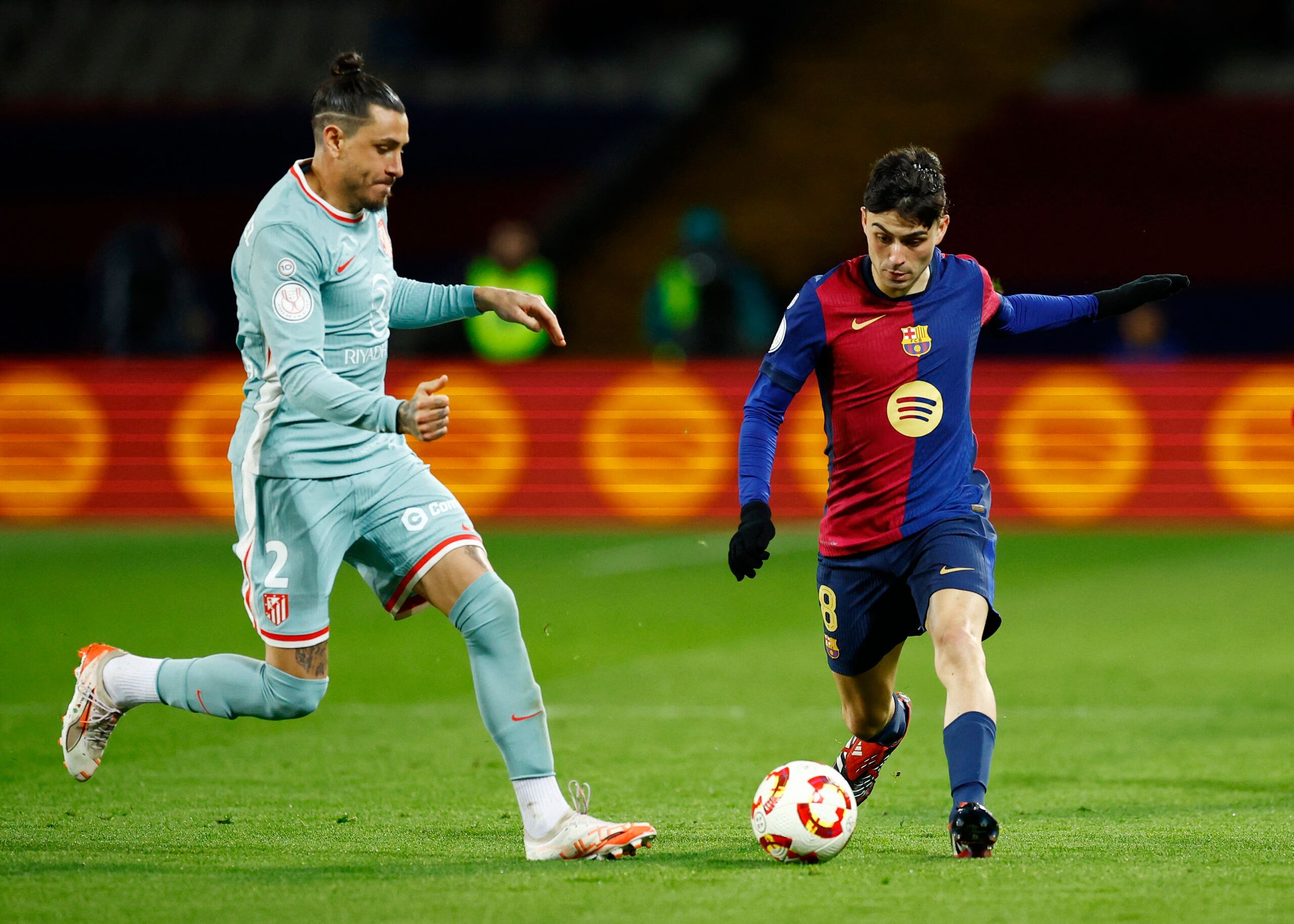 Le dura muy poquito el balón al Atlético. De momento es un monólogo del equipo de Flick. Gran presión que ahoga a los del Cholo.