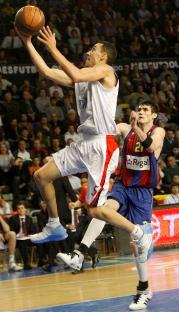 Se le vio más suelto al Barça en ataque y más incisivo en defensa. Jugó muchos balones interiores de inicio para cargar a Thiago Splitter, pero es que además Daniel Santiago anotó con facilidad en el primer cuarto. La fortaleza del puertorriqueño permitió las primeras ventajas de su equipo, aunque el TAU, sin apenas esfuerzo, se mantenía cerca en el marcador e, incluso, lo dominaba con un gran juego exterior. Rakocevic, desde el perímetro, y McDonald, desde la pintura, mantuvieron a raya a los de Pascual, que volvieron a creer en sí mismos, a pesar del 23-24 con el que finalizó el primer parcial.