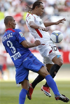 El tanto llegó en el minuto 81, y de ahí hasta la conclusión se vio a un Sevilla impotente e impreciso al que el Getafe no le costó demasiado trabajo parar y que cuando no pudo hacerlo ahí estuvieron los palos de su meta para impedirlo, como en una acción consecutiva de Kanouté y Luis Fabiano que acabó con el balón repelido por los postes.