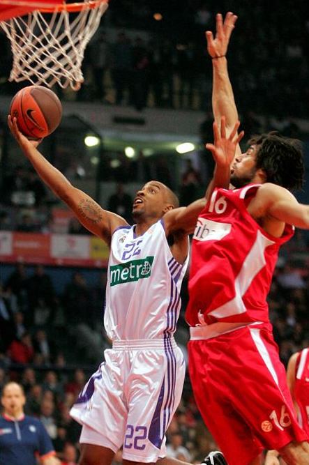 Los madridistas fueron a remolque durante la primera parte. El contundente parcial de 7-0 con el que los griegos abrieron el partido evidenció las diferencias que separaban a ambos conjuntos, y aunque Raúl López y Louis Bullock lograron frenar esa primera ofensiva, los de Pannagiotis Giannakis ya habían dejado claras sus intenciones. Nikola Vujcic era un arma demasiado poderosa a la que el juego interior de los blancos no podía hacer frente. El pívot croata destapó las carencias de la defensa blanca con 13 puntos sin fallo en el primer cuarto, desquiciando a sus pares con una nueva lección de versatilidad al poste.