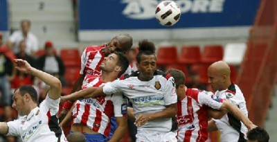 Sporting, 2: Juan Pablo; Lora, Gregory, Botía, Canella; Eguren, Rivera; Nacho Novo (Bilic m 86), De las Cuevas (Carmelo m 68), Diego Castro, y Sangoy (Barral m 68)