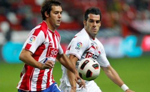 El Sevilla se fue con todo al ataque y el Sporting empezó a sufrir, aunque la defensa estuvo muy atenta y aunque con agobio despejaba los intentos ofensivos del equipo andaluz que tenía a prácticamente a todos sus hombres en el medio campo local asumiendo mucho peligro, porque una contra podría ser mortal, como un trallazo del uruaguayo Sebastián Eguren desde fuera del área que salió alto.