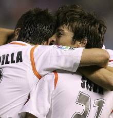 Valencia: Hildebrand, Miguel, Helguera, Albiol o Alexis, Moretti, Baraja, Albelda, Joaquín o Angulo, Silva, Villa y Zigic