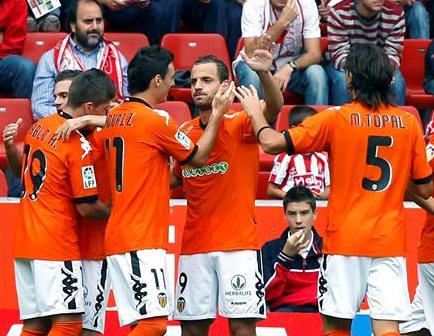 Preciado decidió jugar la baza del ataque y sustituyó a Luis Morán por Barral sin que la tónica cambiase porque el Valencia hacía lo que quería, cuando quería y al ritmo que le apetecía, aunque tras los dos goles el resto de llegadas no revistieron peligro, mientras que los rojiblancos lo único que hicieron en esta primera mitad fue correr sin sentido.
