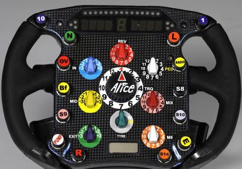 El volante del F2008 muestra todas las posibilidades que tiene el piloto para modifcar las características del monoplaza. (Foto: www.f2008.it)