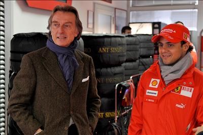 El presidente de Ferrari, Luca Cordero di Montezemolo, y el piloto brasileño, Felipe Massa, posan para una foto en Fiorano. (EFE)
