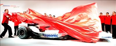 El nuevo monoplaza del equipo de Fórmula Uno Panasonic Toyota, el TF108, fue presentado este jueves 10 de enero de 2008 en Colonia, Alemania. (EFE)
