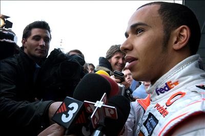 Lewis Hamilton atiende a los medios tras participar en la segunda jornada de entrenamientos libres que ha llevado a cabo la escudería McLaren-Mercedes en el circuito de Jerez. (EFE)