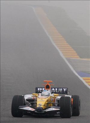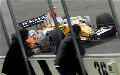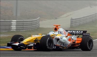 El piloto de Fórmula Uno de la escudería Renault Alonso estrenó su R-28 sobre el circuito Ricardo Tormo tras levantarse un poco la intensa niebla con la que amaneció el trazado. (EFE)