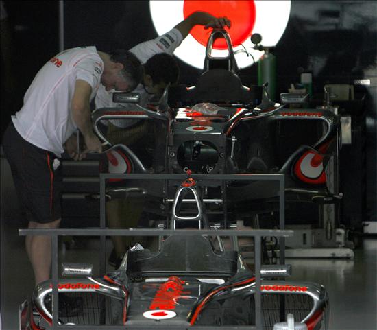 Un mecánico de la escudería McLaren trabaja en los boxes. (EFE)