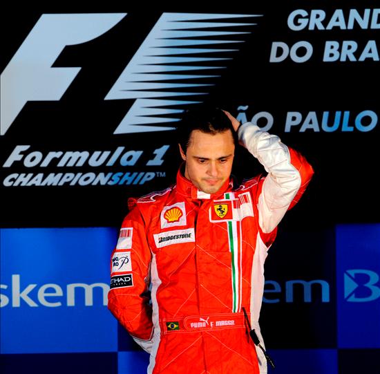 Felipe Massa sube al podio que le acredita como el vencedor del Gran Premio de Brasil. (EFE)