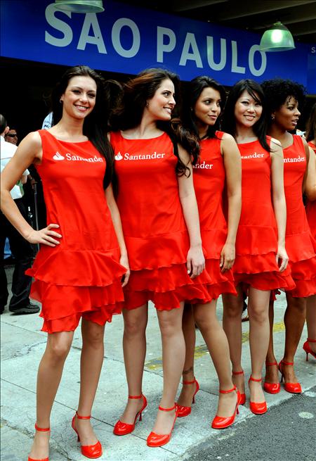 Un grupo de azafatas brasileñas posa justo antes del comienzo de la decisiva carrera.(EFE)