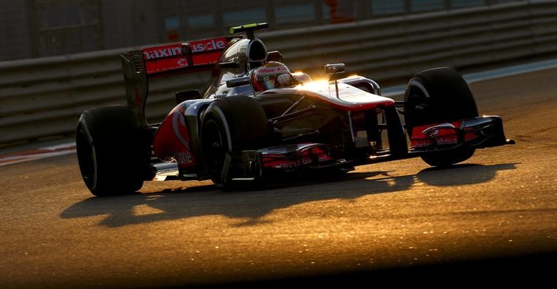 El McLaren Mercedes de Hamilton en el circuito de Abu Dabi.