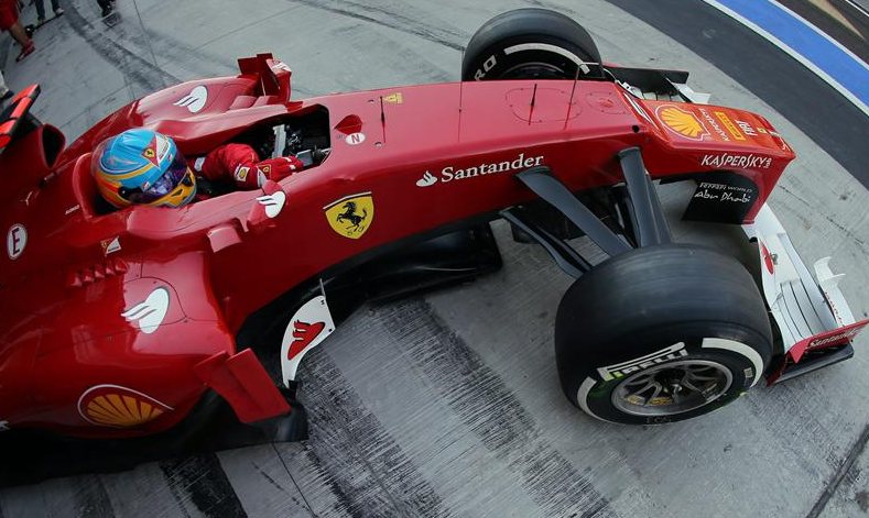 El Ferrari de Fernando Alonso coge una curva durante la segunda sesión de los entrenamientos libres en el que ha sido séptimo.