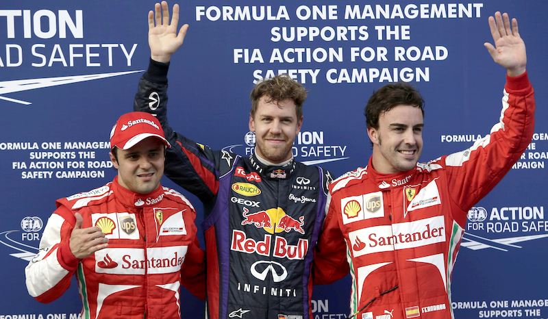 Trigésima octava 'pole position' de Sebastian Vettel en su carrera en la Fórmula Uno. El tricampeón mundial ha sido más rápido que los Ferrari del brasileño Felipe Massa y Fernando Alonso.