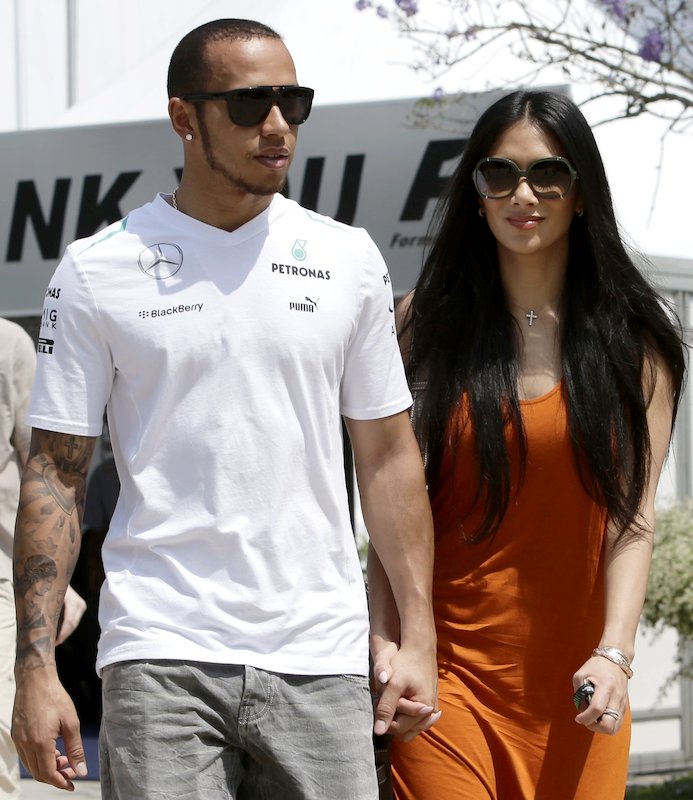El inglés Lewis Hamilton (Mercedes) pasea por las instalaciones del circuito de Sepang junto a la cantante Nicole Scherzinger.