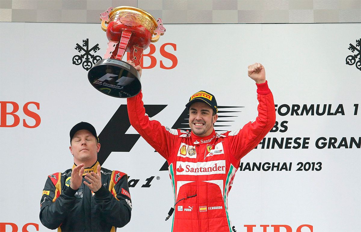 Alonso cubrió las 56 vueltas a la pista, para un recorrido total de 305 kilómetros, en una hora, 36 minutos, 26 segundos y 945 milésimas. Compartió podio con el finlandés Kimi Raikkonen (Lotus) y el inglés Lewis Hamilton.