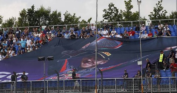 Cientos de aficionados desplegaron una gigantesta pancarta dedicada a Sebastian Vettel.