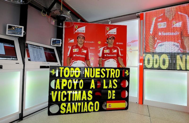 Fernando Alonso y Pedro Martínez de la Rosa quisieron mostrar su apoyo a todas las víctimas del trágico accidente de Santiago de Compostela.