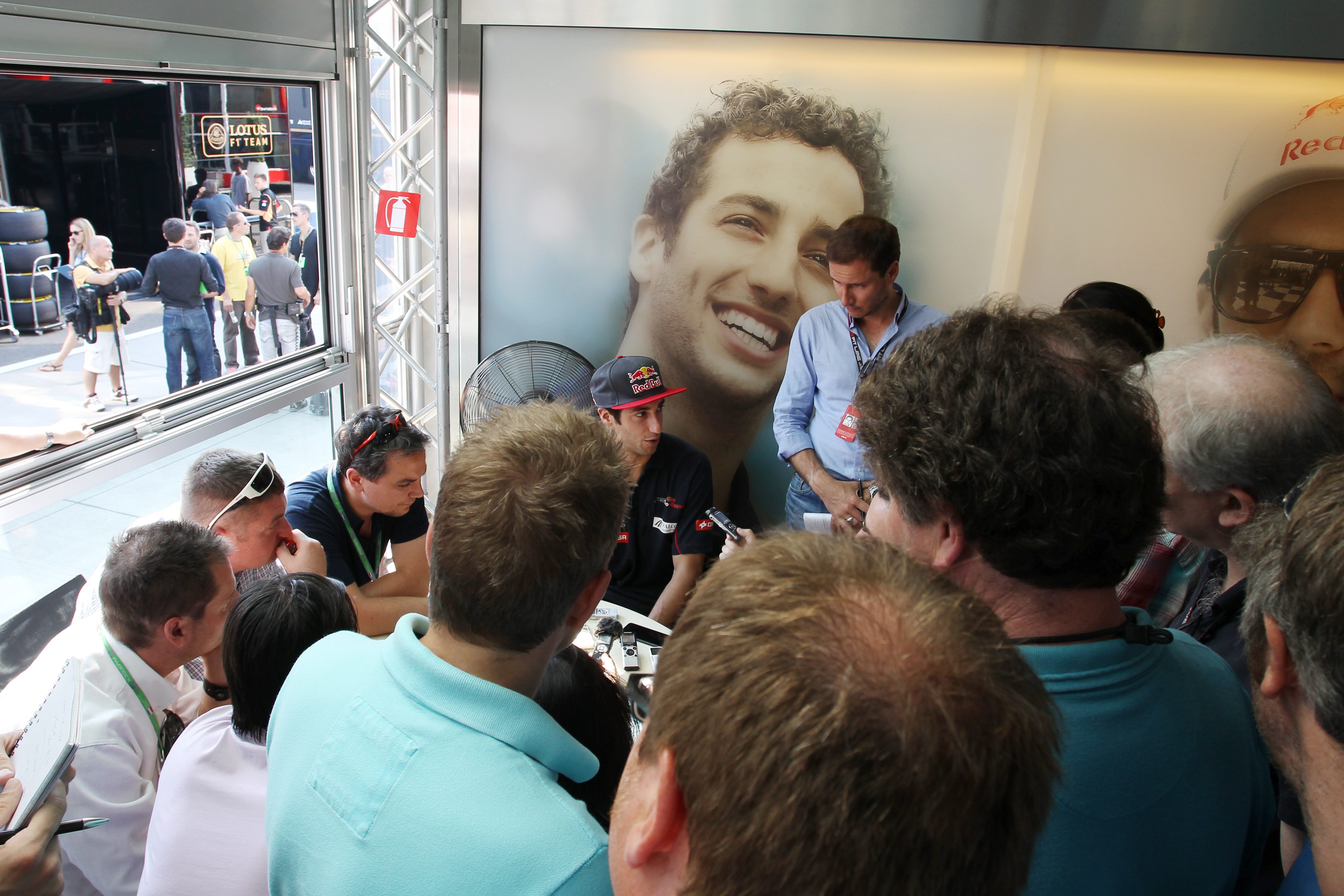 Ricciardo atiende a la prensa antes de los entrenamientos libres. El piloto de Toro Rosso es uno de los candidatos para sustituir a Webber el próximo año.