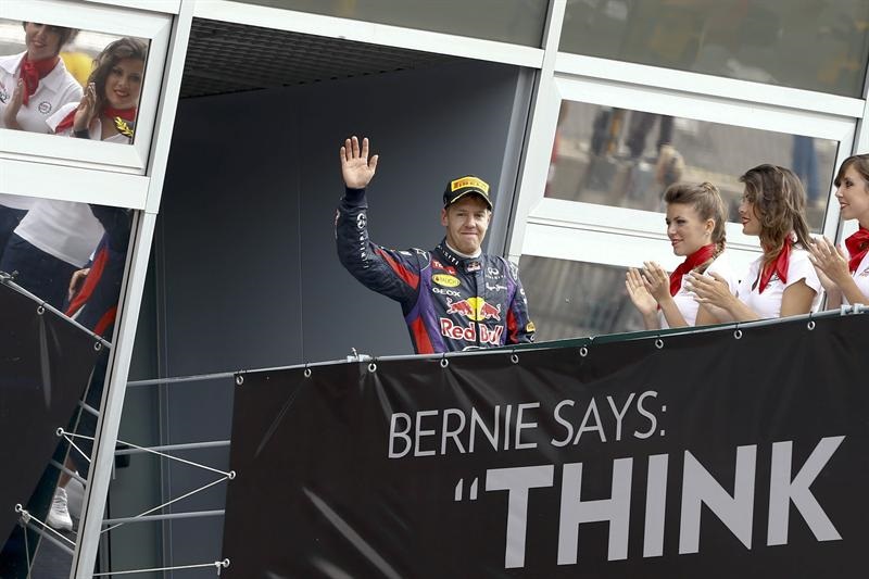 Sebastian Vettel celebró la victoria en el GP de Italia, que le permite ser aún más líder del Mundial de Fórmula Uno 2013.