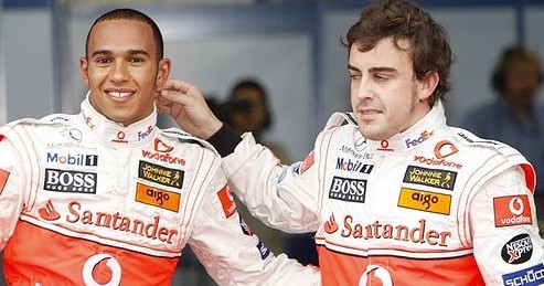 Muchos fueron los rumores sobre una mala relación entre Hamilton y Alonso en su etapa en Mercedes - McLaren. La rivalidad entre el británico y el asturiano sobre el asfalto fue una de las más duras entre compañeros de la misma escudería, aunque fue Raikkonnen quien sacó provecho haciéndose con el campeonato.
