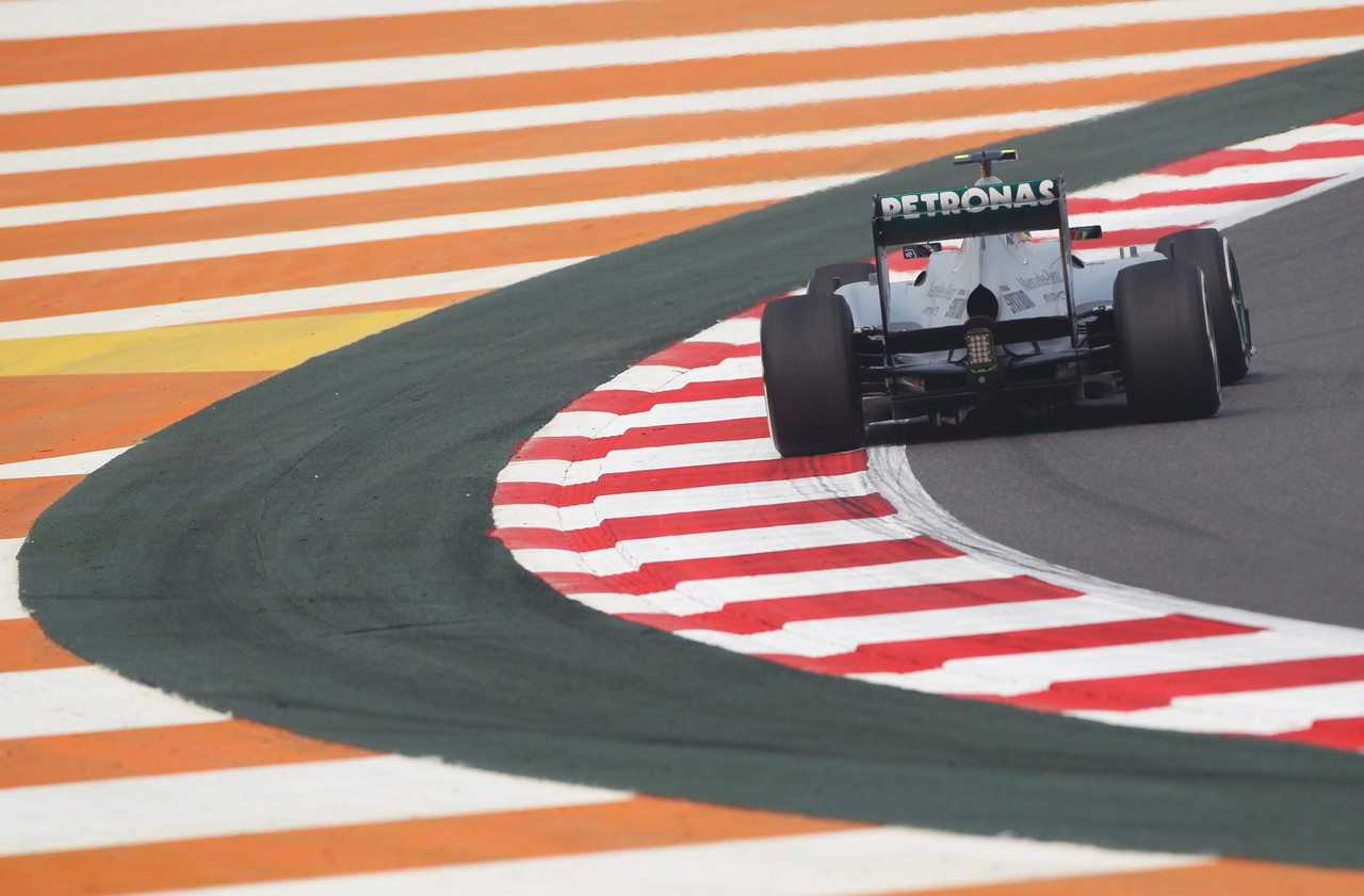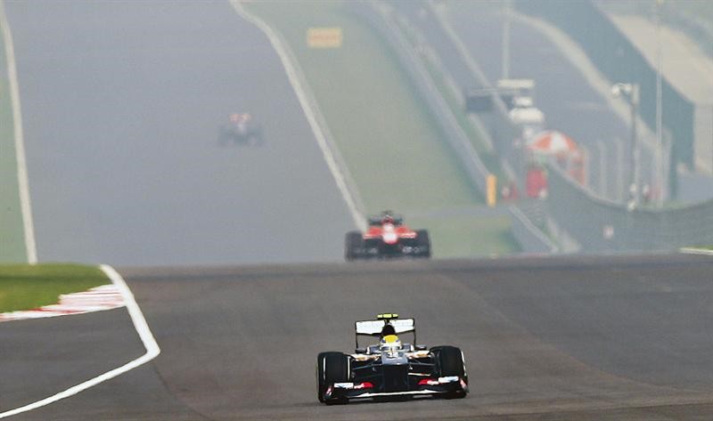 El piloto Lewis Hamilton recorre el circuito de Baddh en los primeros entrenamientos libres del Gran Premio de la India.