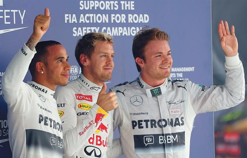 Sebastian Vettel, Nico Rosberg y Lewis Hamilton lograron los mejores cronos durante la sesión de calificación.