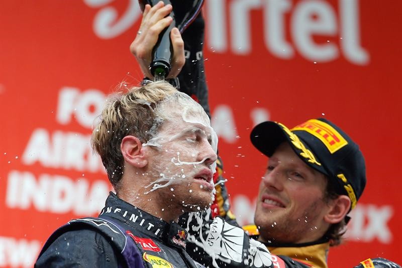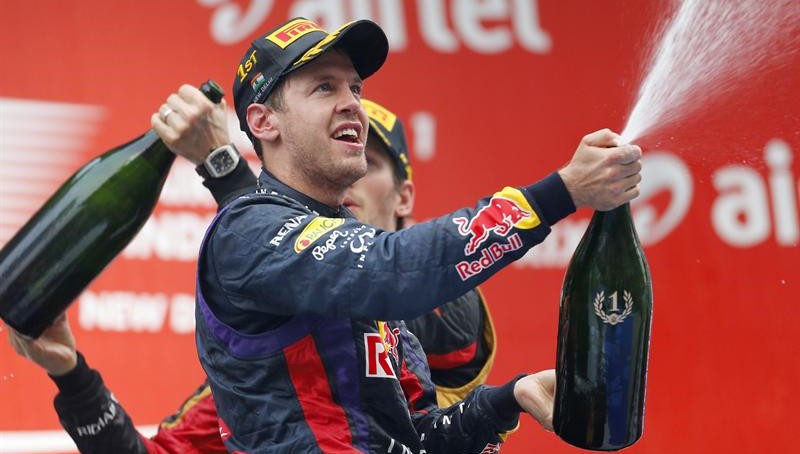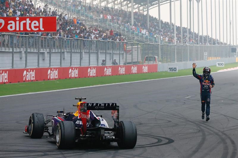 Sebastian Vettel ha celebrado desde el podio del Gran Premio de India su cuarto título mundial consecutivo de Fórmula 1.