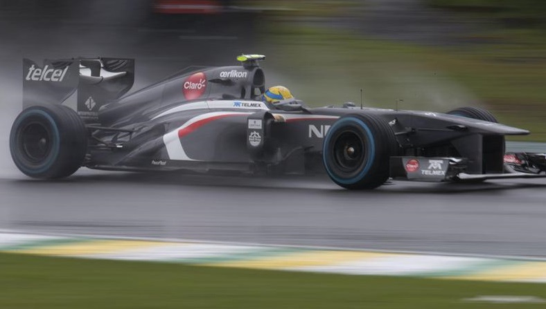 La última sesión libre vino determinada por la lluvia en Brasil. En la imagen, Esteban Gutiérrez conduce sobre el asfalto mojado con su Sauber.